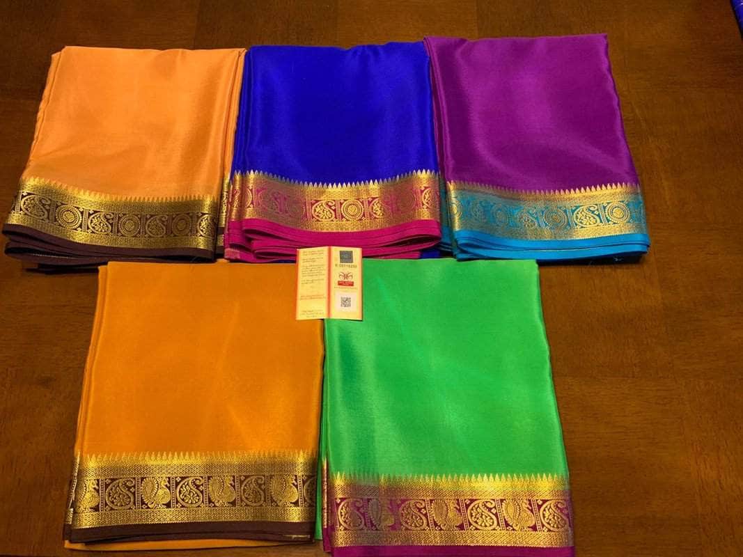 Exclusive range of South silk, which is a traditional Indian wear. The crepe saree comes with a plain body and striped pallú.