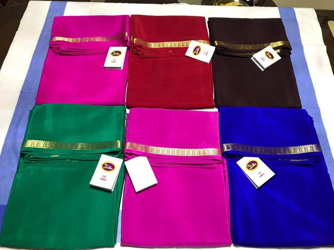 Exclusive range of South silk, which is a traditional Indian wear. The crepe saree comes with a plain body and striped pallú.