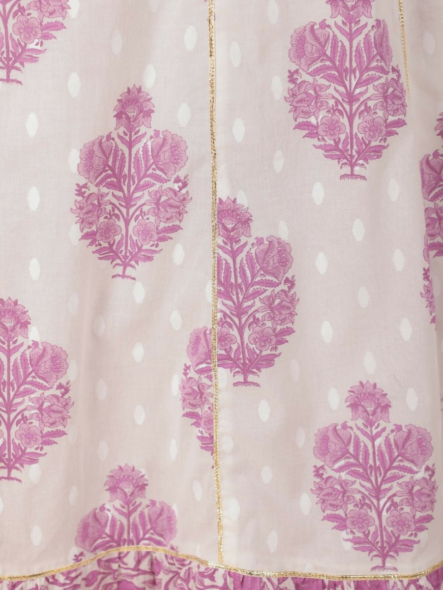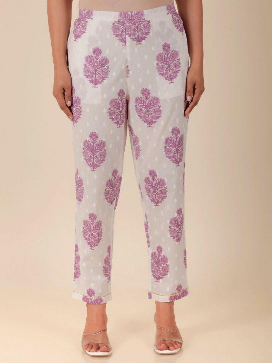 Aramya Anarkali Soft Cotton Floral Print Women's Kurta Set - White