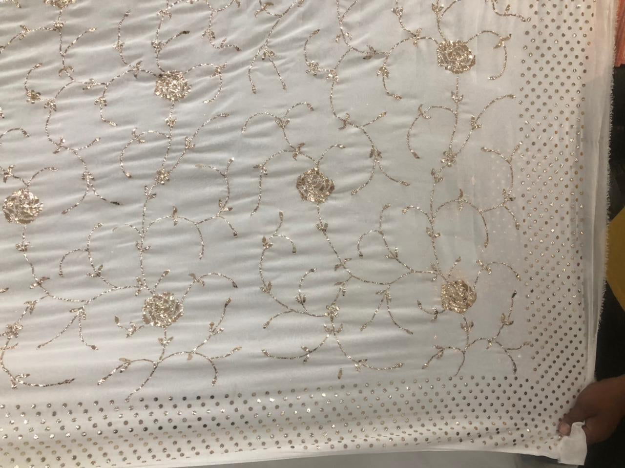 This is a custom organza Silk saree , beautiful mukesh with pearls nd mirror add-on. These can be dyed in the color of your choice . The design and color requirements will be collected by email after the order is placed .