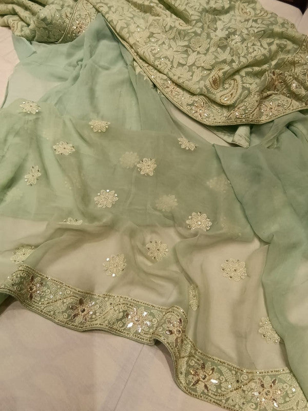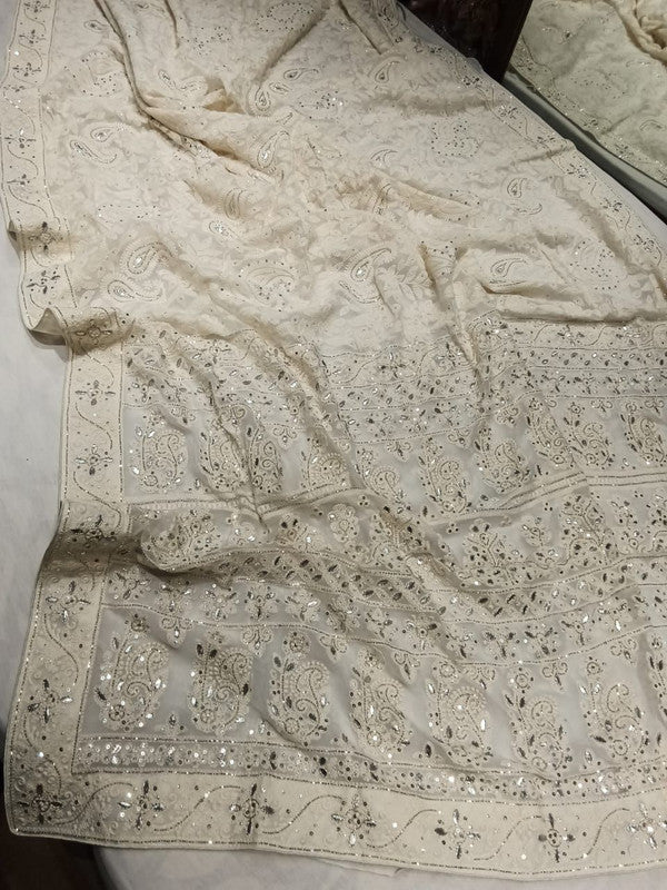 Beautiful Pure Georgette Chikankari Gotta Patti Saree