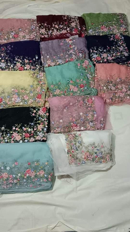 Indulge in the timeless elegance of this exquisite Russian silk saree, meticulously adorned with delicate French Nott and Katha handwork. Crafted with precision and passion, this saree exudes a sense of unparalleled beauty and sophistication. The luxurious texture of Russian silk drapes gracefully, while the intricate handwork adds a touch of artisanal charm. Perfect for special occasions or cultural celebrations, this saree effortlessly captures the essence of traditional craftsmanship intertwined with modern allure. Elevate your style with this masterpiece that epitomizes the fusion of elegance and artistry