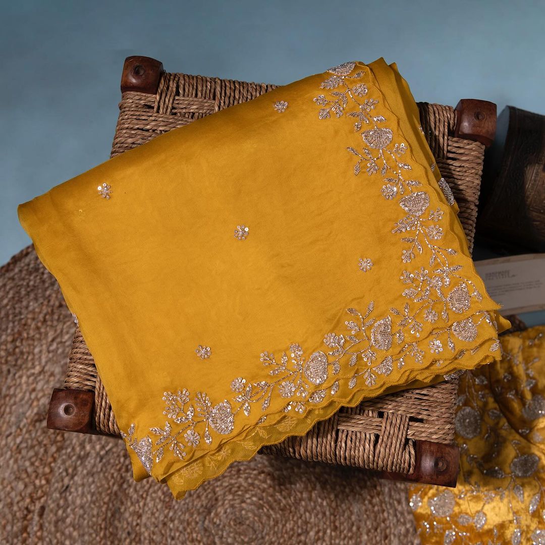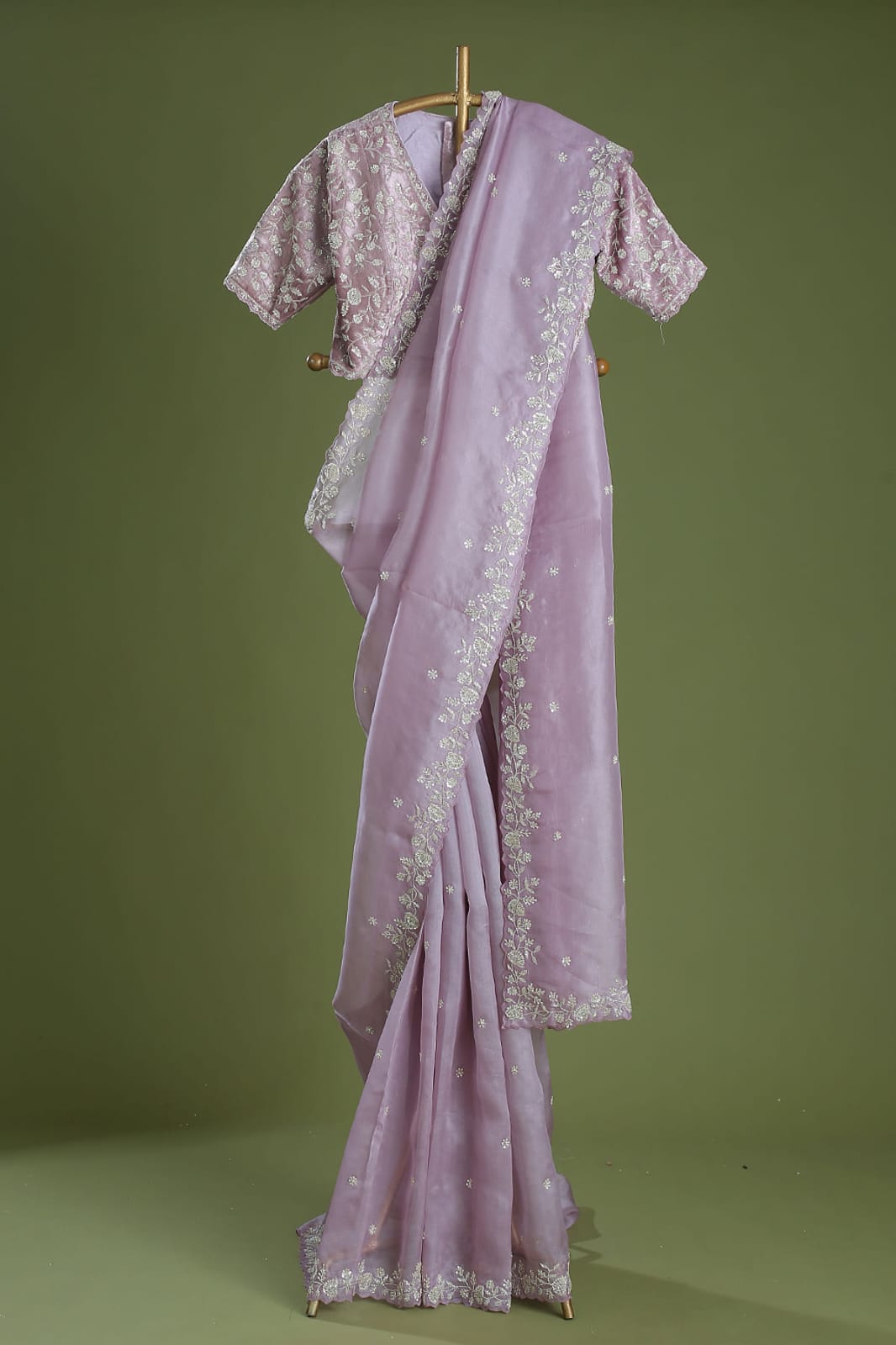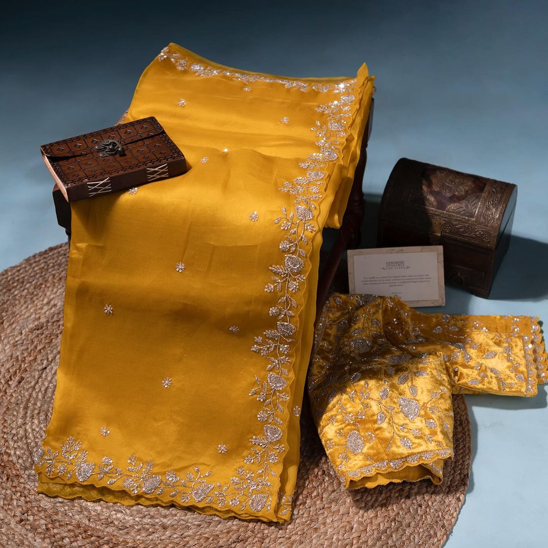 Designer Organza Silk Saree with Cutdana Handwork Border