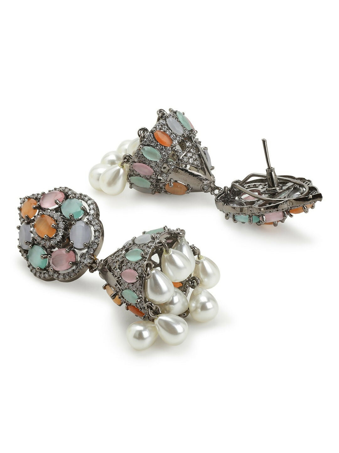 Diamond Multi Jhumki Earrings- Ruby Raang