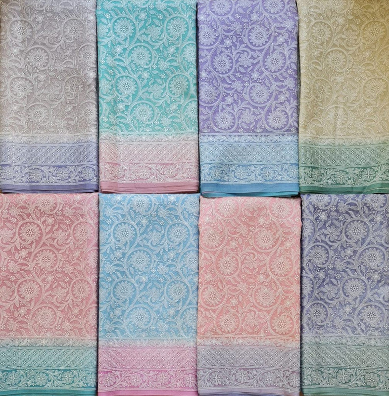 Exclusive Pure Organza Heavy Anchal Embroidery Work Chikankari Silk Saree