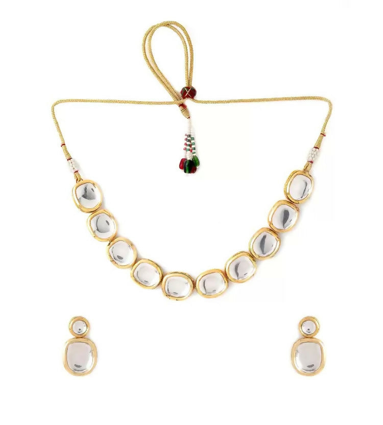 Joban Fashion Golden & White Kundan Work Necklace Set