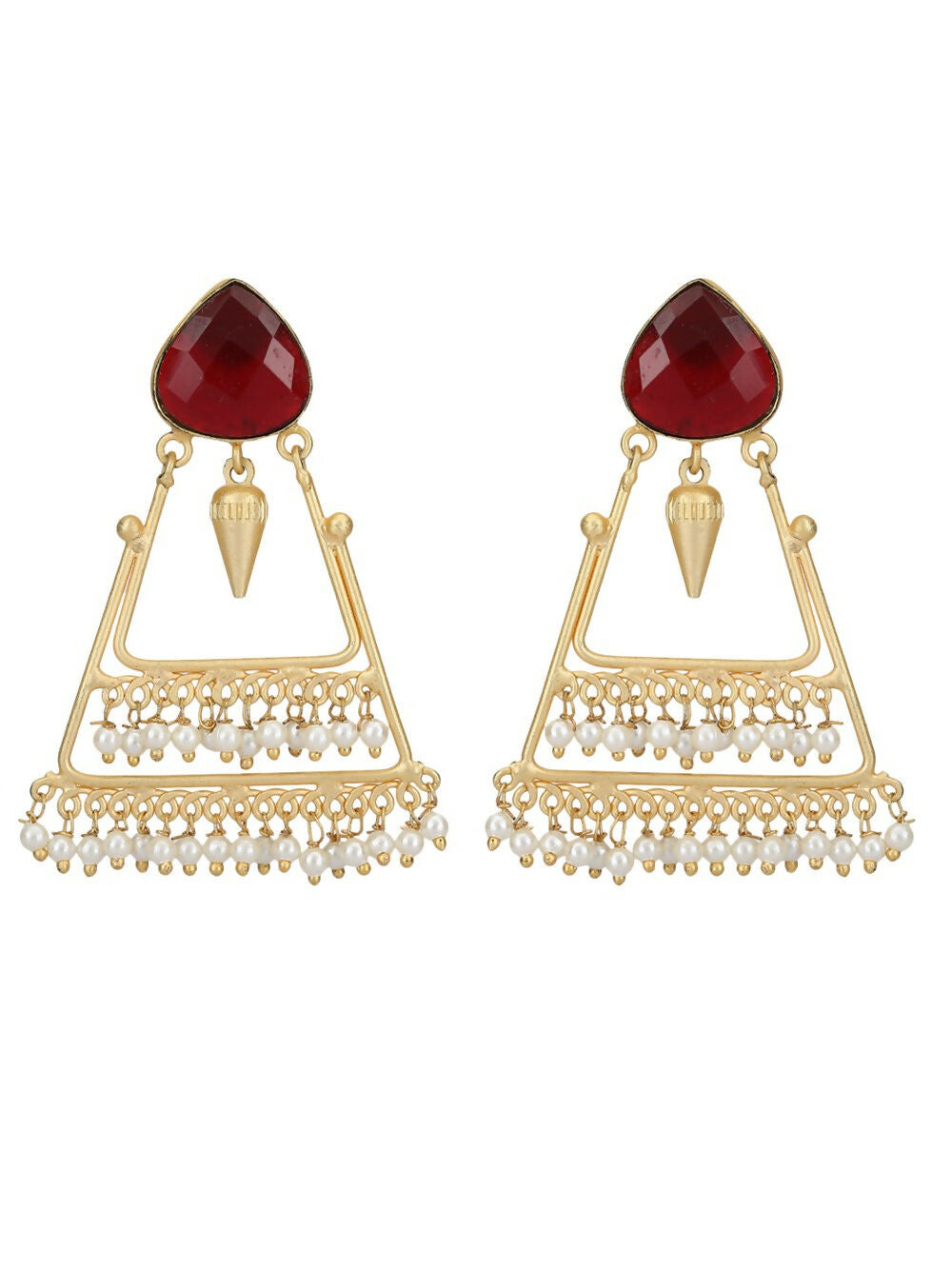 Joban Fashion Women Handcrafted Red Stone Matte Gold Earrings