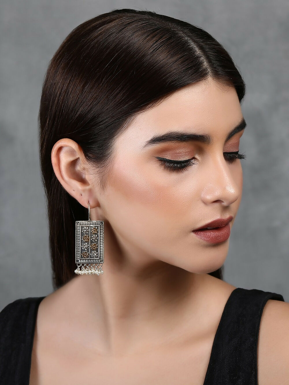 Joban Fashion Women White Beads Pattern Dual Tone Brass Earrings