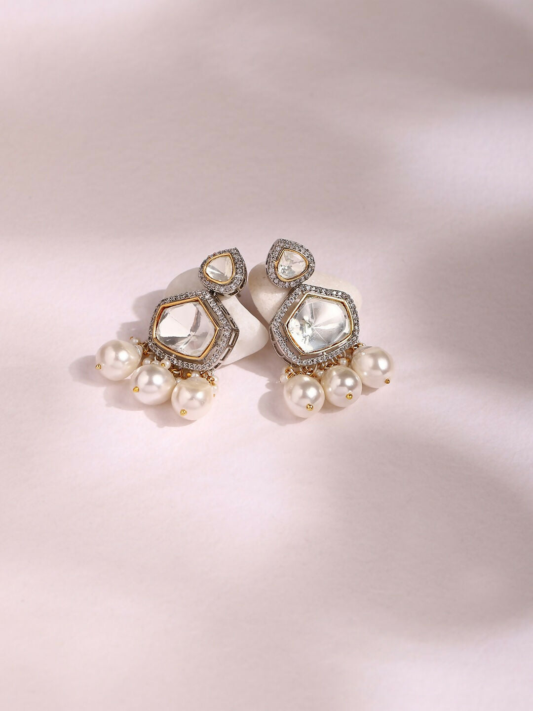 Kundan and Diamond Stone Earrings with Pearls- Ruby Raang