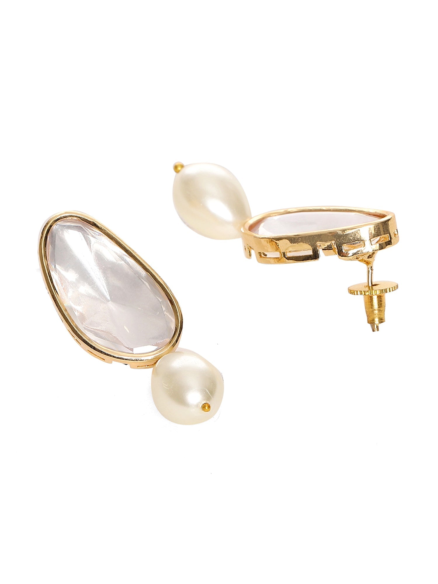 Long Kundan Stud with Pearl Drop - Ruby Raang