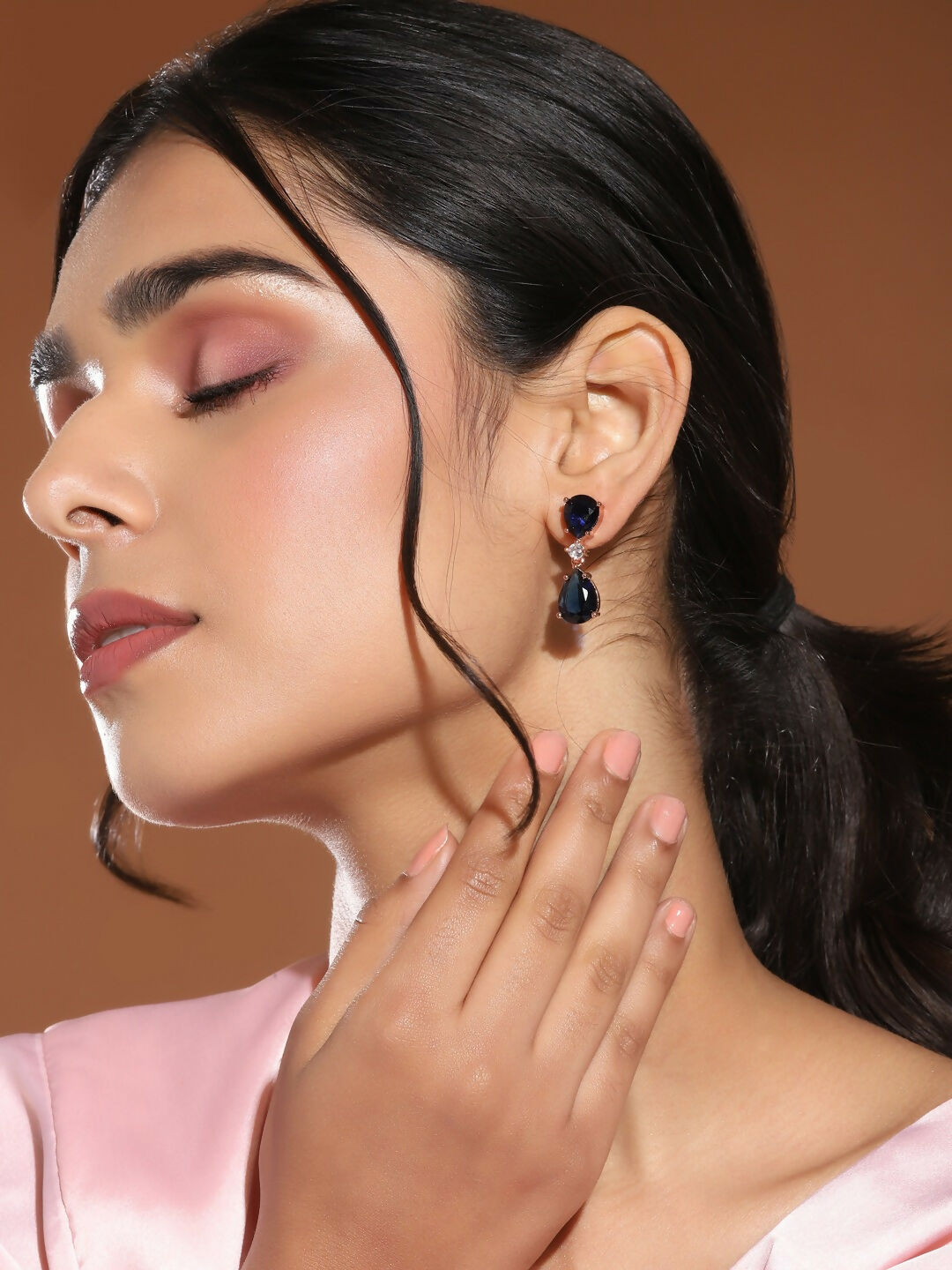 Midnight Blue Stone Earrings- Ruby Raang