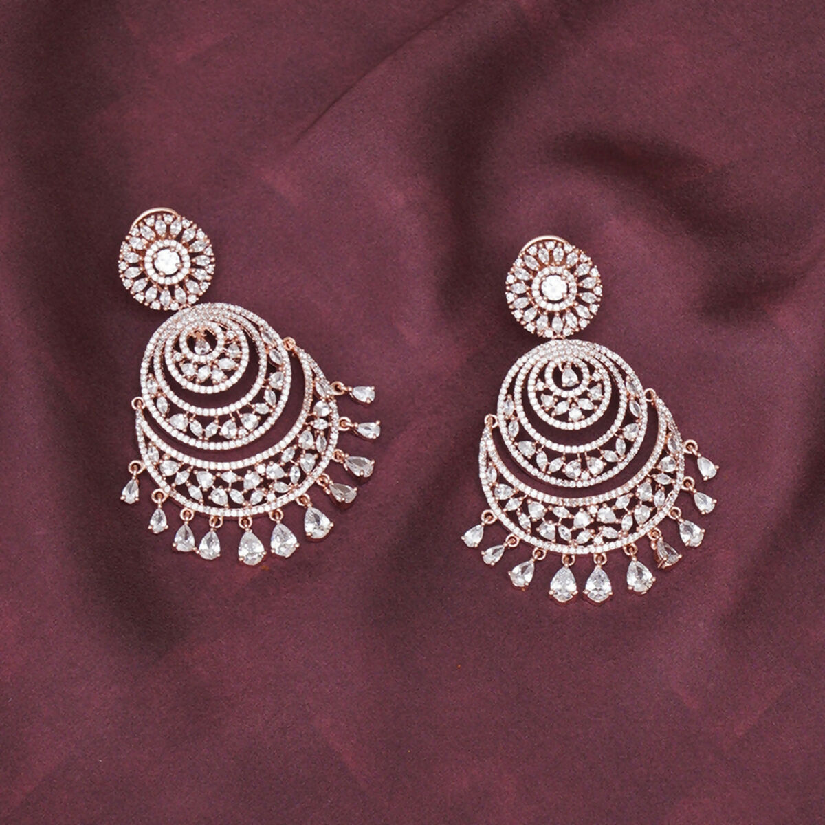 Rose Gold Diamond Chand Earrings- Ruby Raang