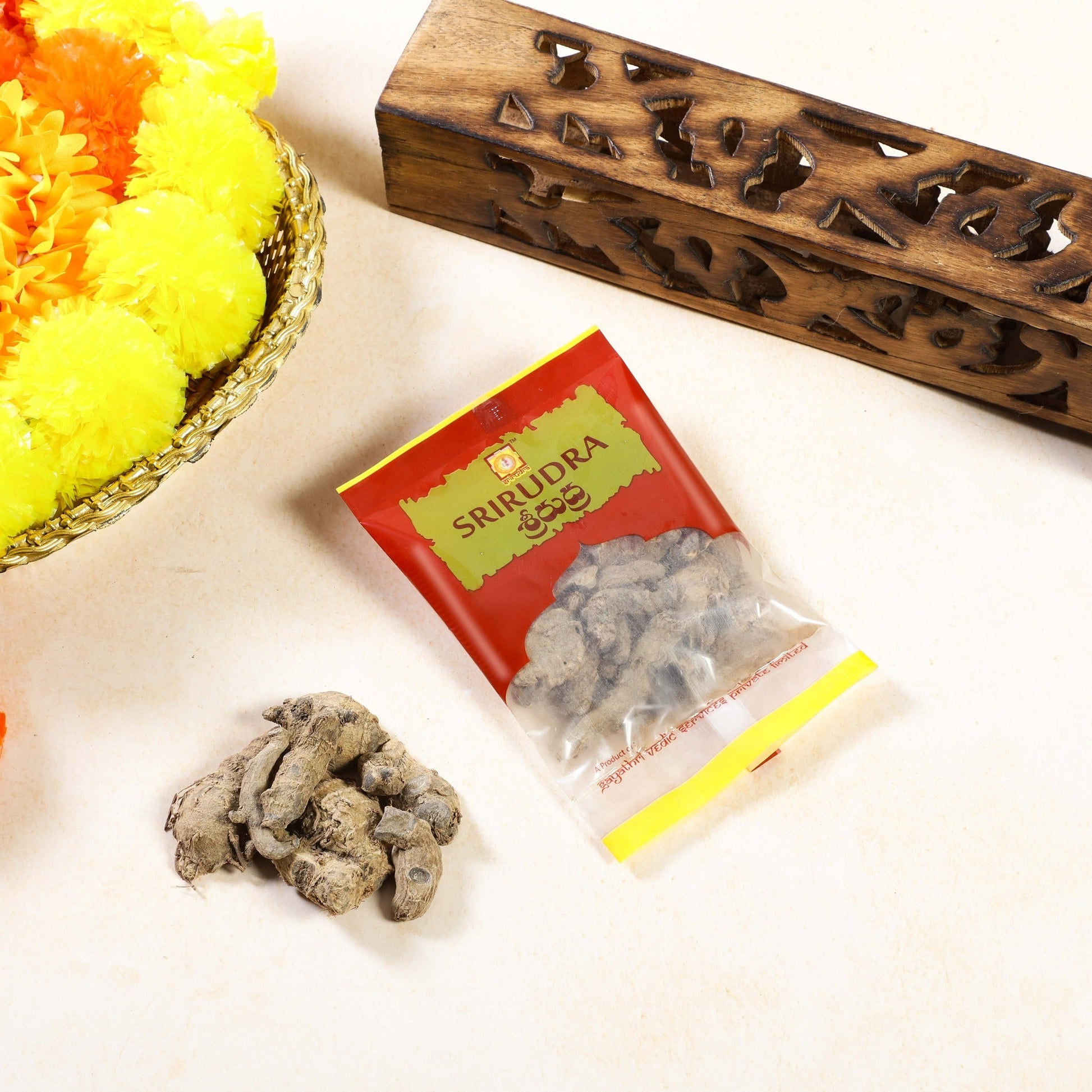 About The Product:Sri Rudra Nalla Pasupu Kommulu is a rare and powerful spiritual herb used in poojas and homams. This sacred black turmeric is deeply valued in spiritual cleansing rituals, believed to protect against negative energies and remove black magic. Used for both religious and medicinal purposes, it strengthens immunity, promotes healing, and brings divine protection when offered during sacred ceremonies.
